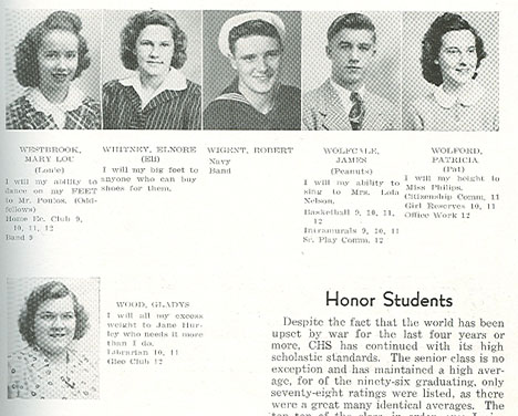 Mary Lou Westbrook, Elnore Whitney, Robert Wigent, James Wolfcale, Patricia Wolford, Glady Wood