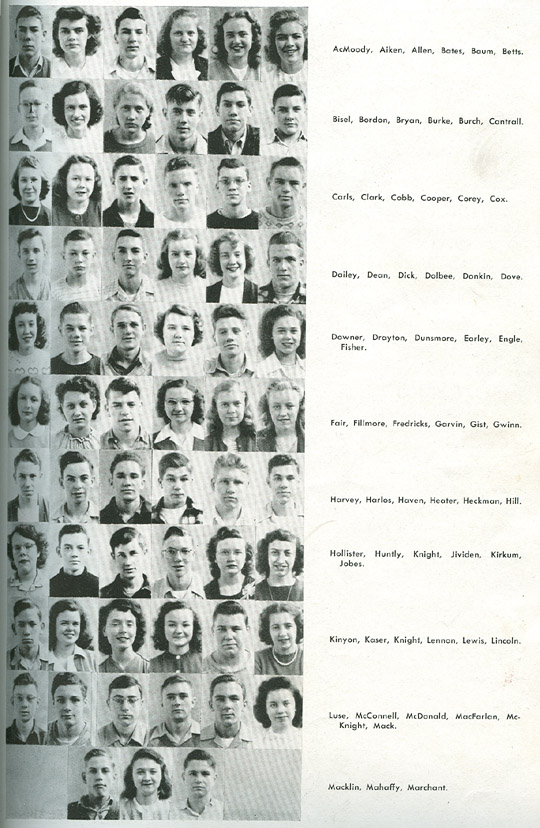 Row 9: Kinyon, Kaser, Knight, Lennon, Lewis, Lincoln