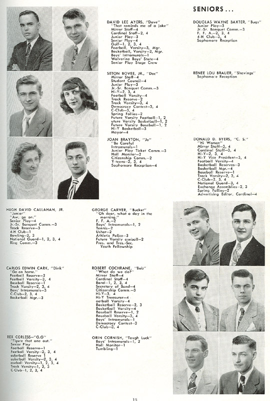 David AYERS, Douglas BAXTER, Seton BOVEE, Renee BRAUER, Joan BRAYTON, Donald BYERS Hugh CALLAHAN, George CARVER, Carlos CARK, Robert COCHRANE, Rex CORLESS, Orin CORNISH