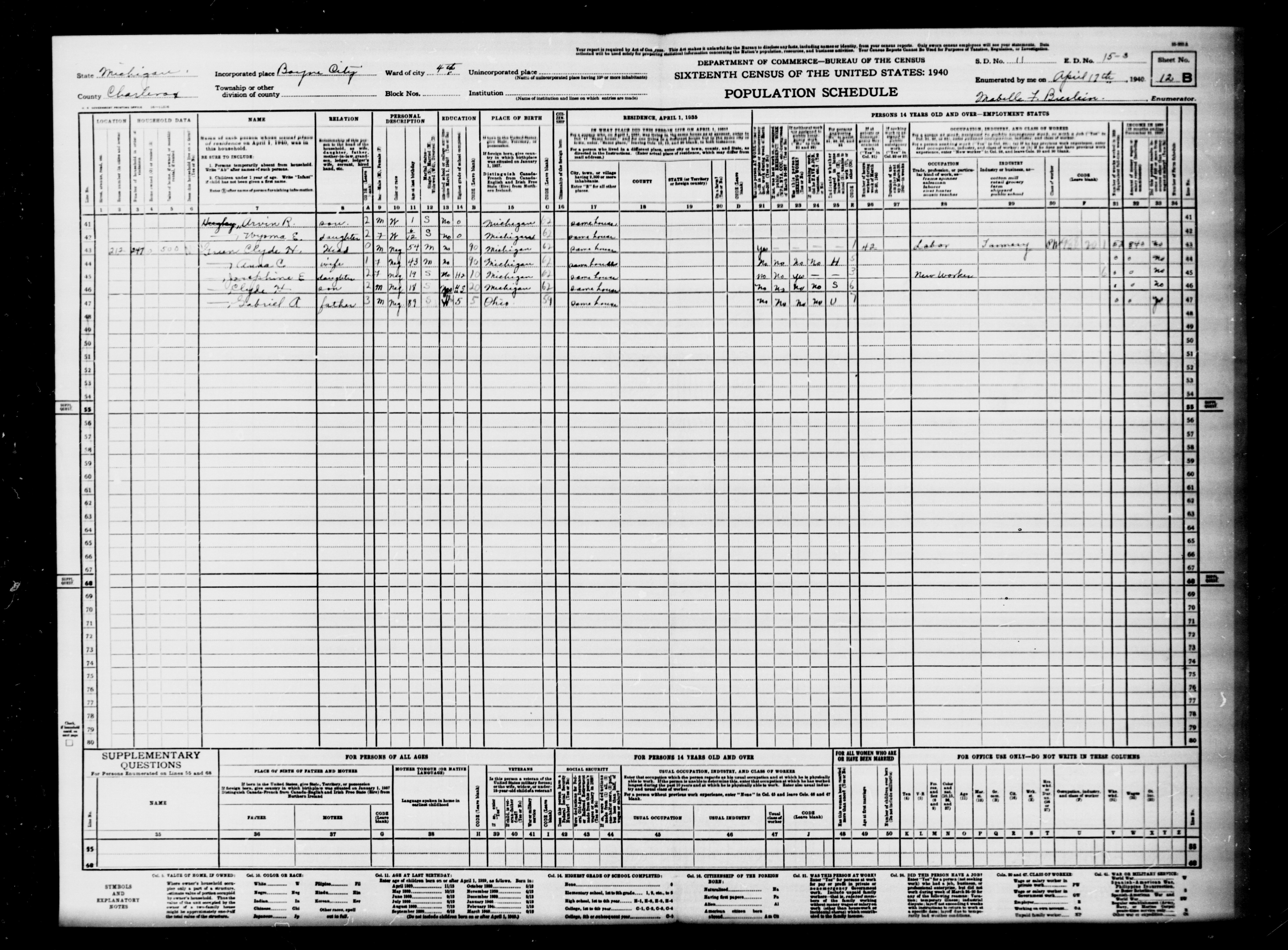 Hughey, Pansy | Charlevoix | Boyne City | N Park St | 15-2 | 7A