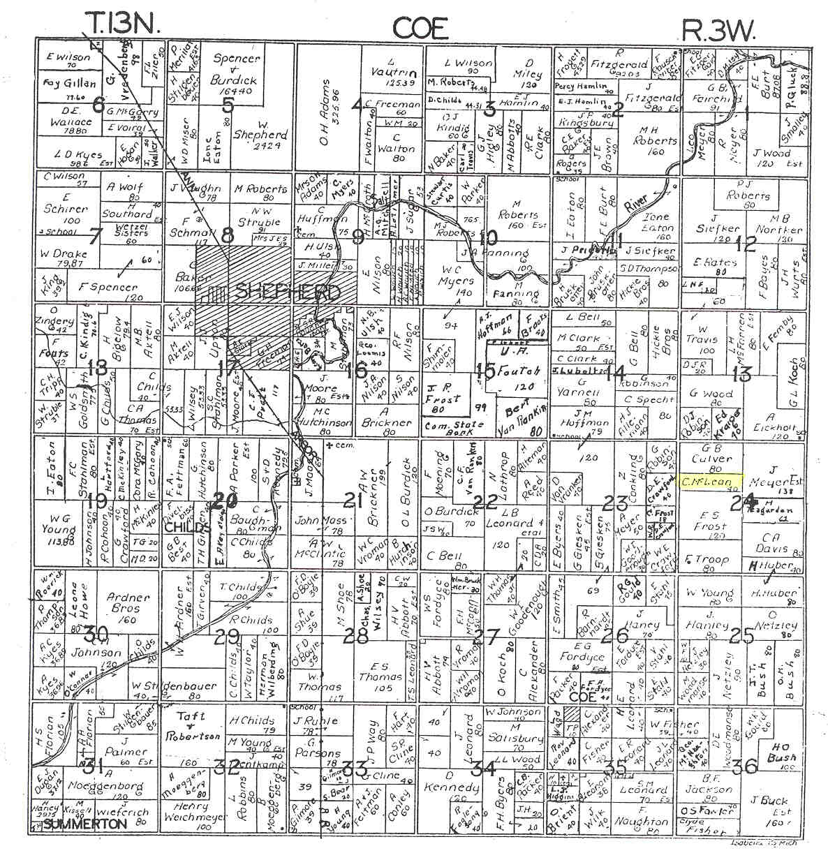 1931 Coe Township Plat Map