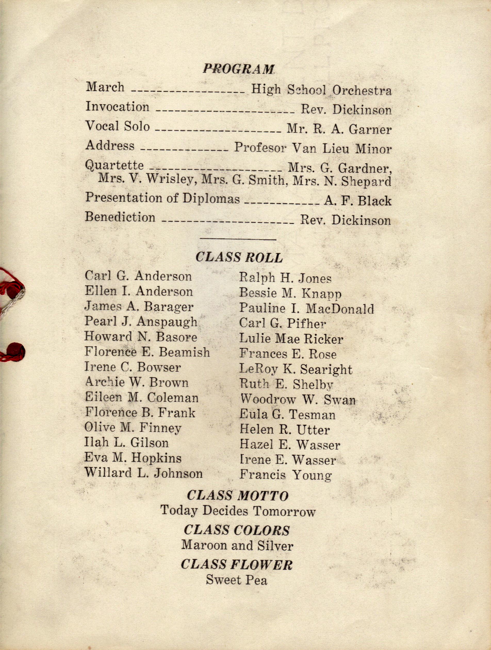 Carl Pifher, President Eva Hopkins, Secretary