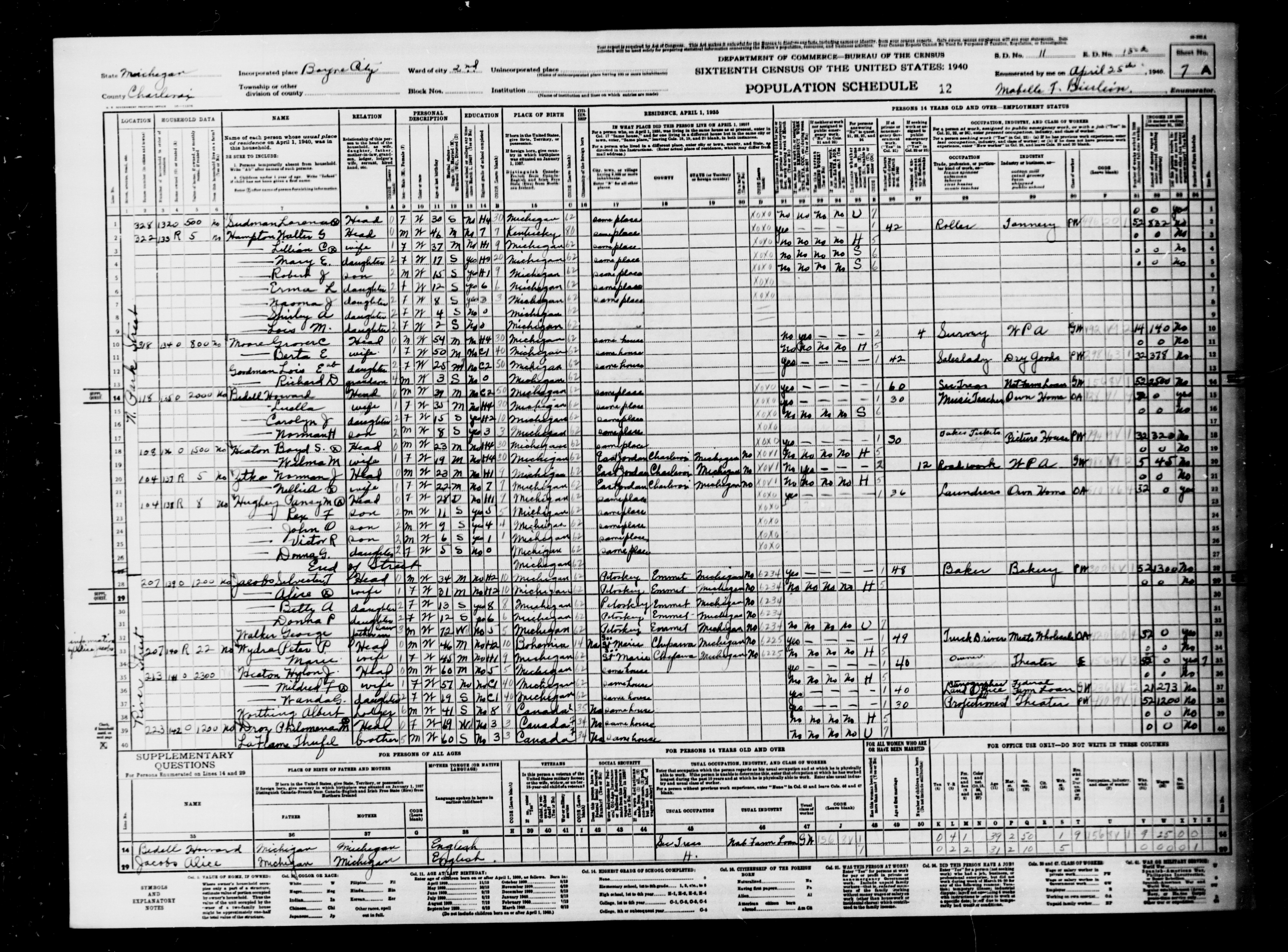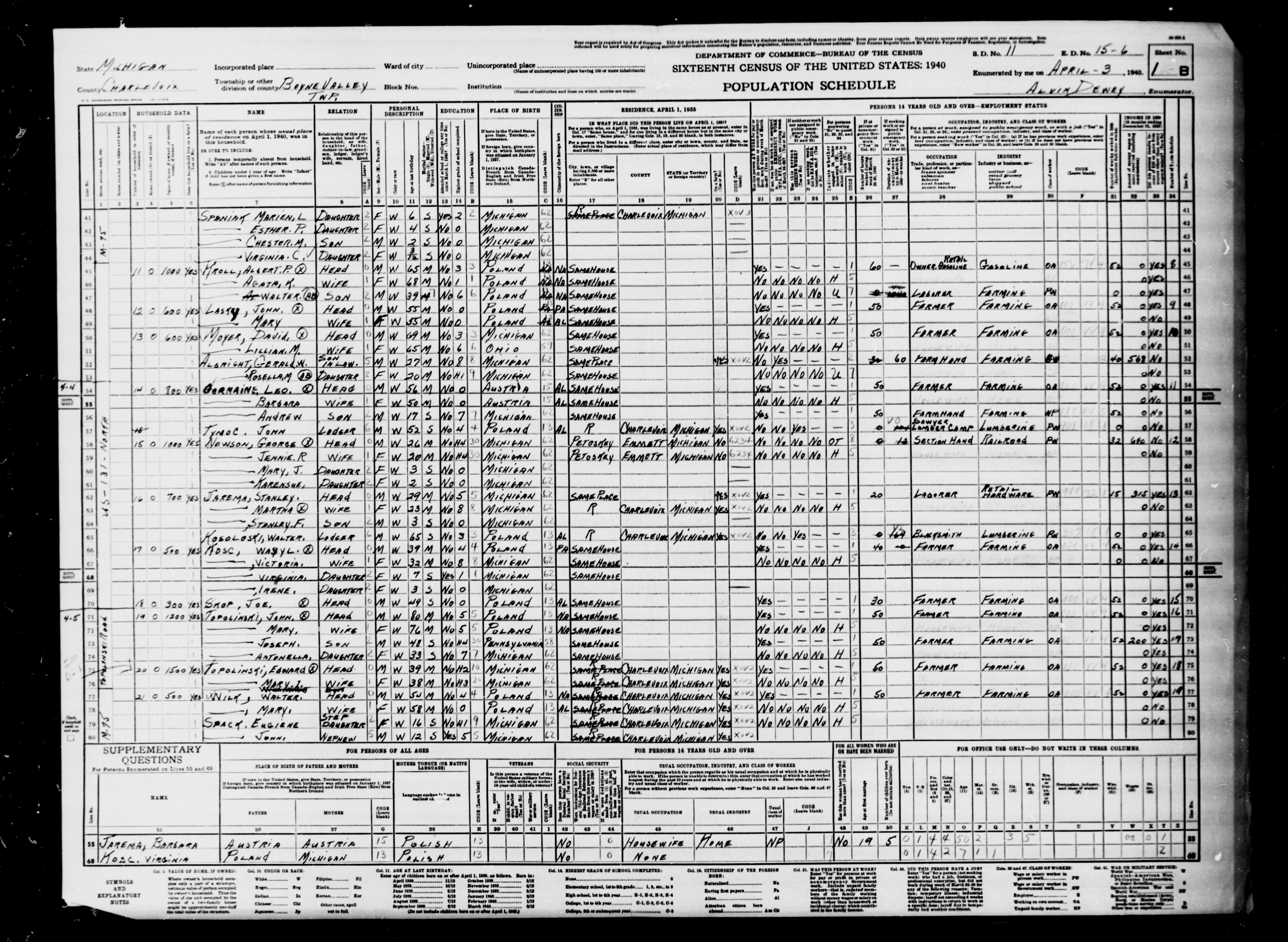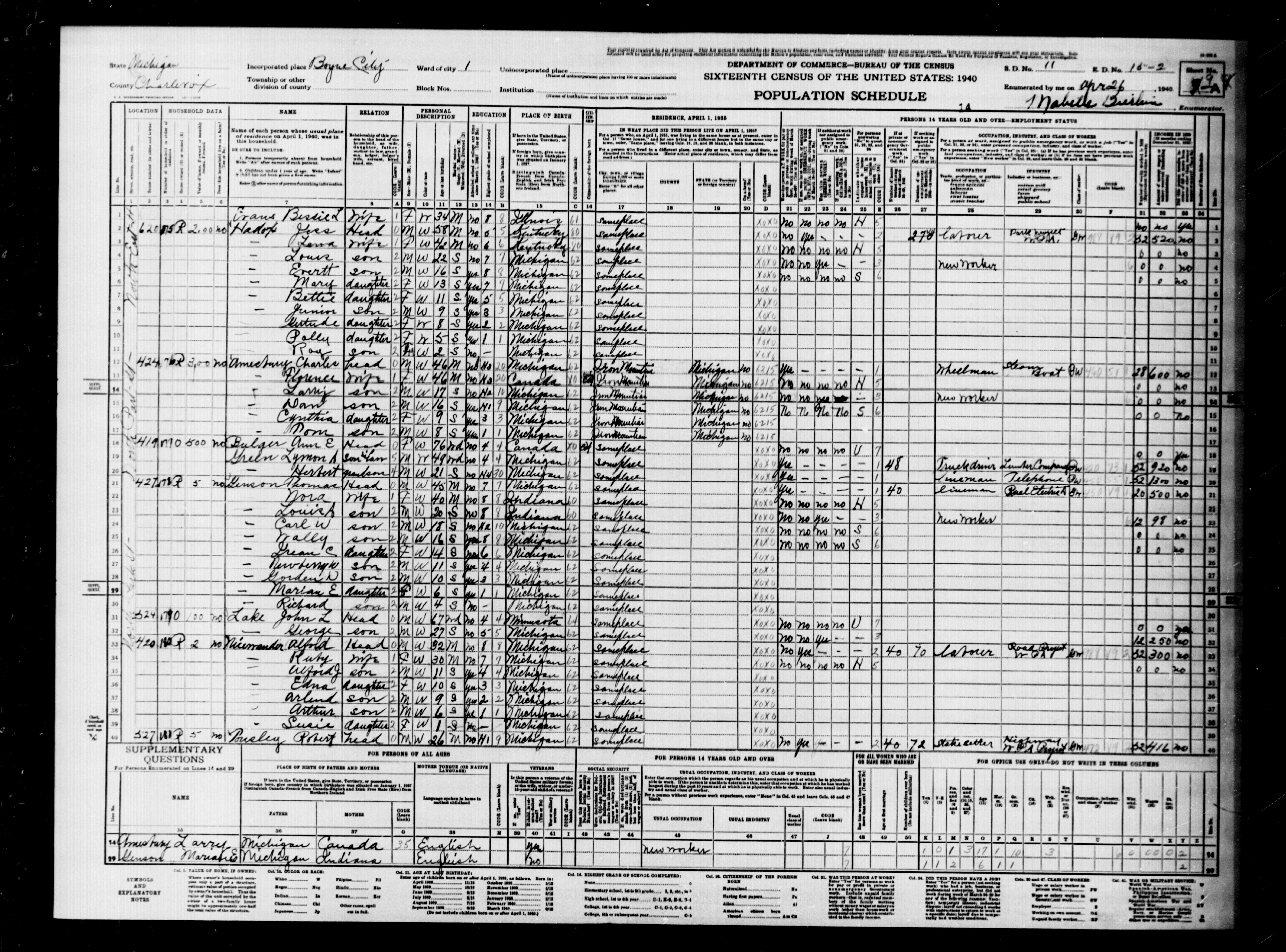 1940 Census, Charlevoix County