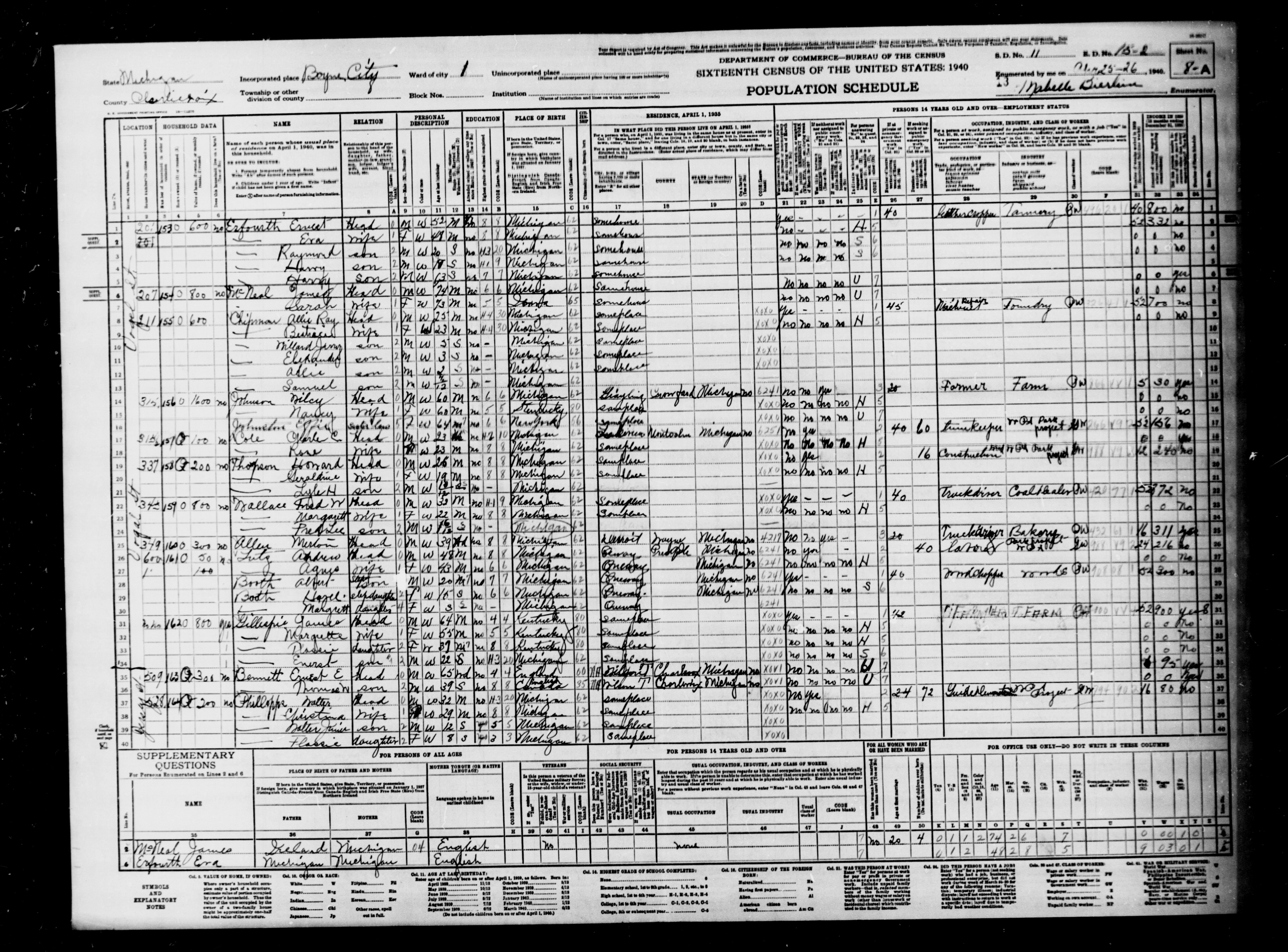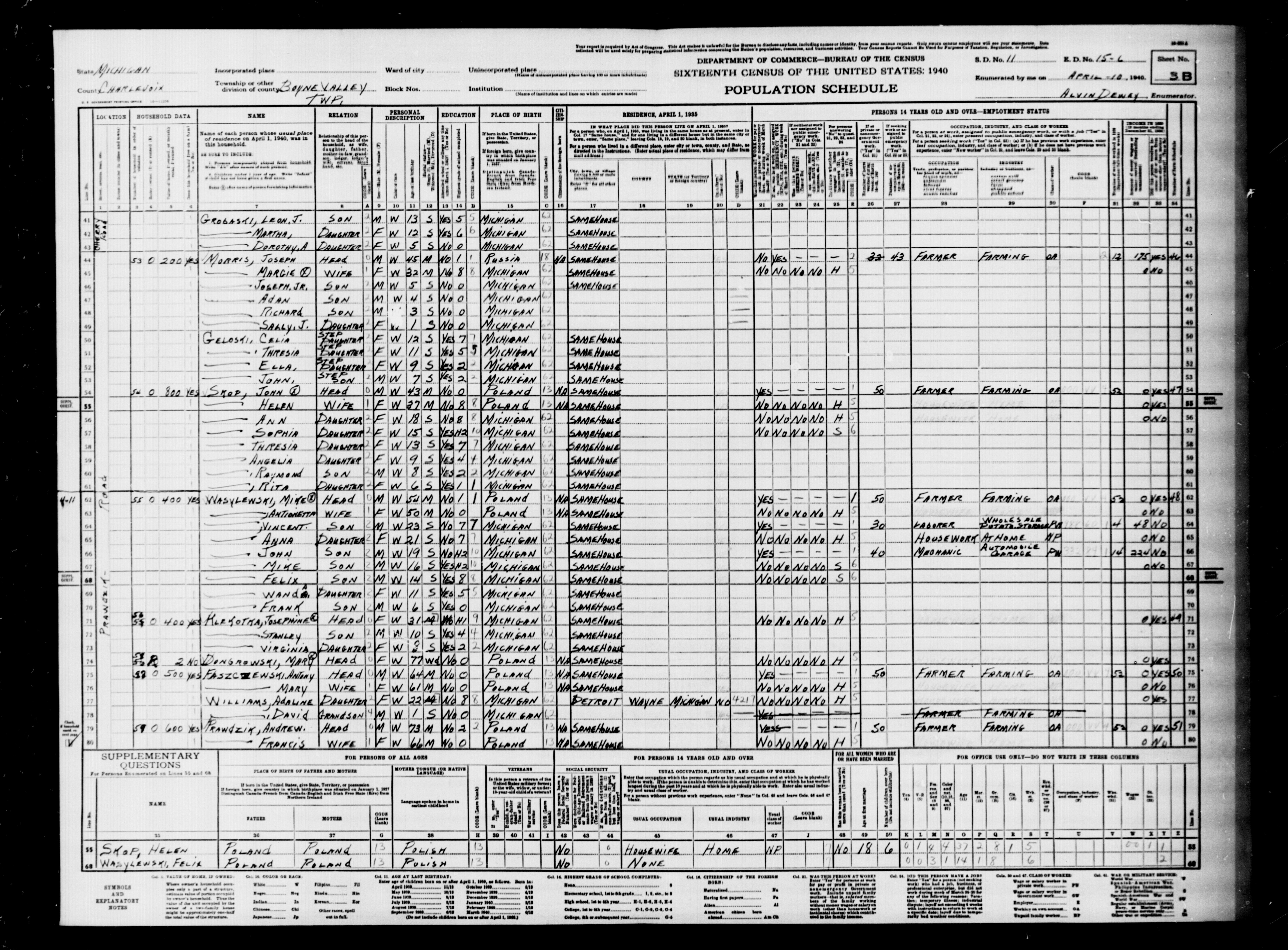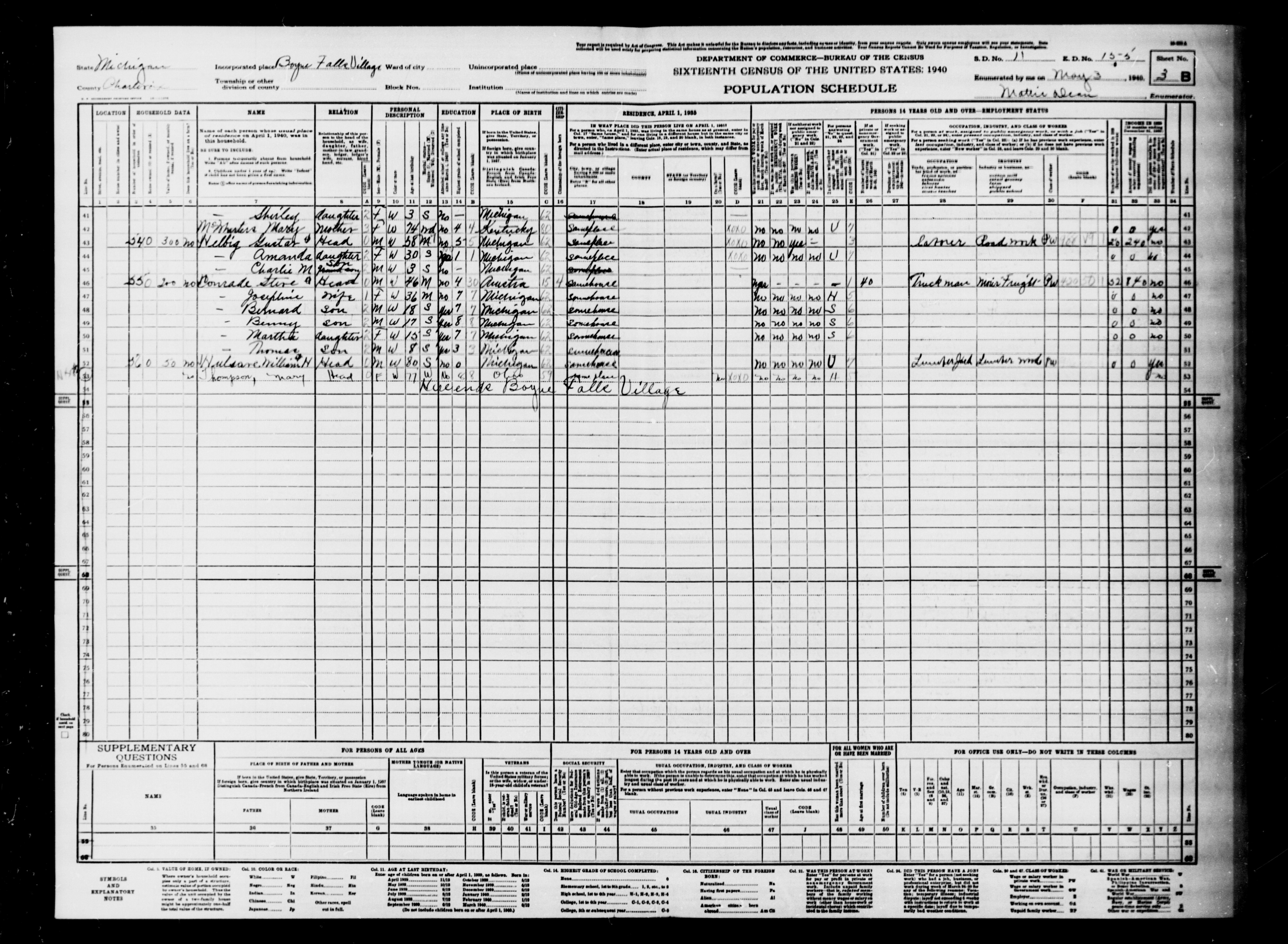 1940 Census, Charlevoix County