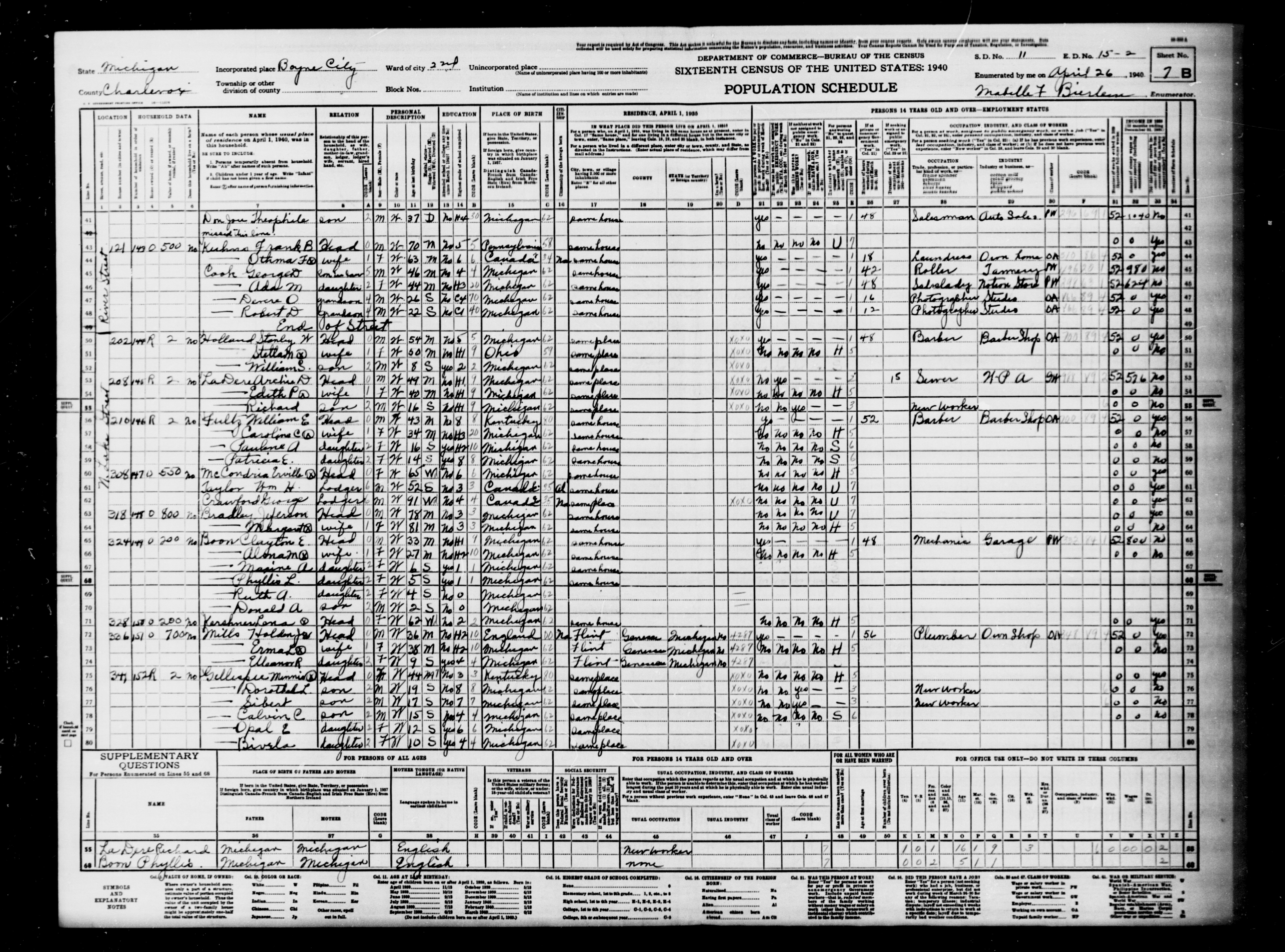 Gillewie, Ernest | Charlevoix | Boyne City | W Division St | 15-3 | 5B