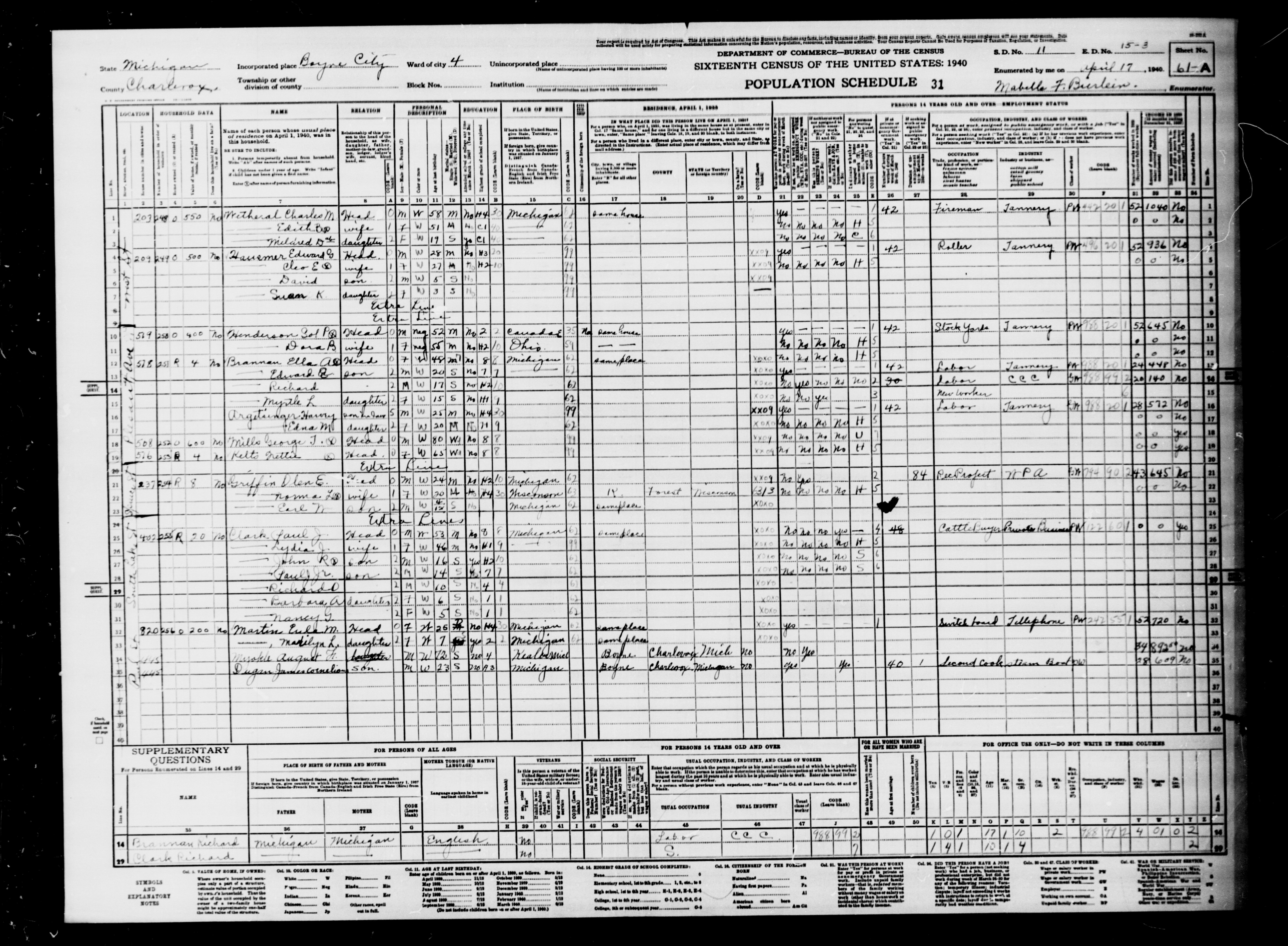 Green, Clyde | Charlevoix | Boyne City | Spruce St | 15-3 | 12A