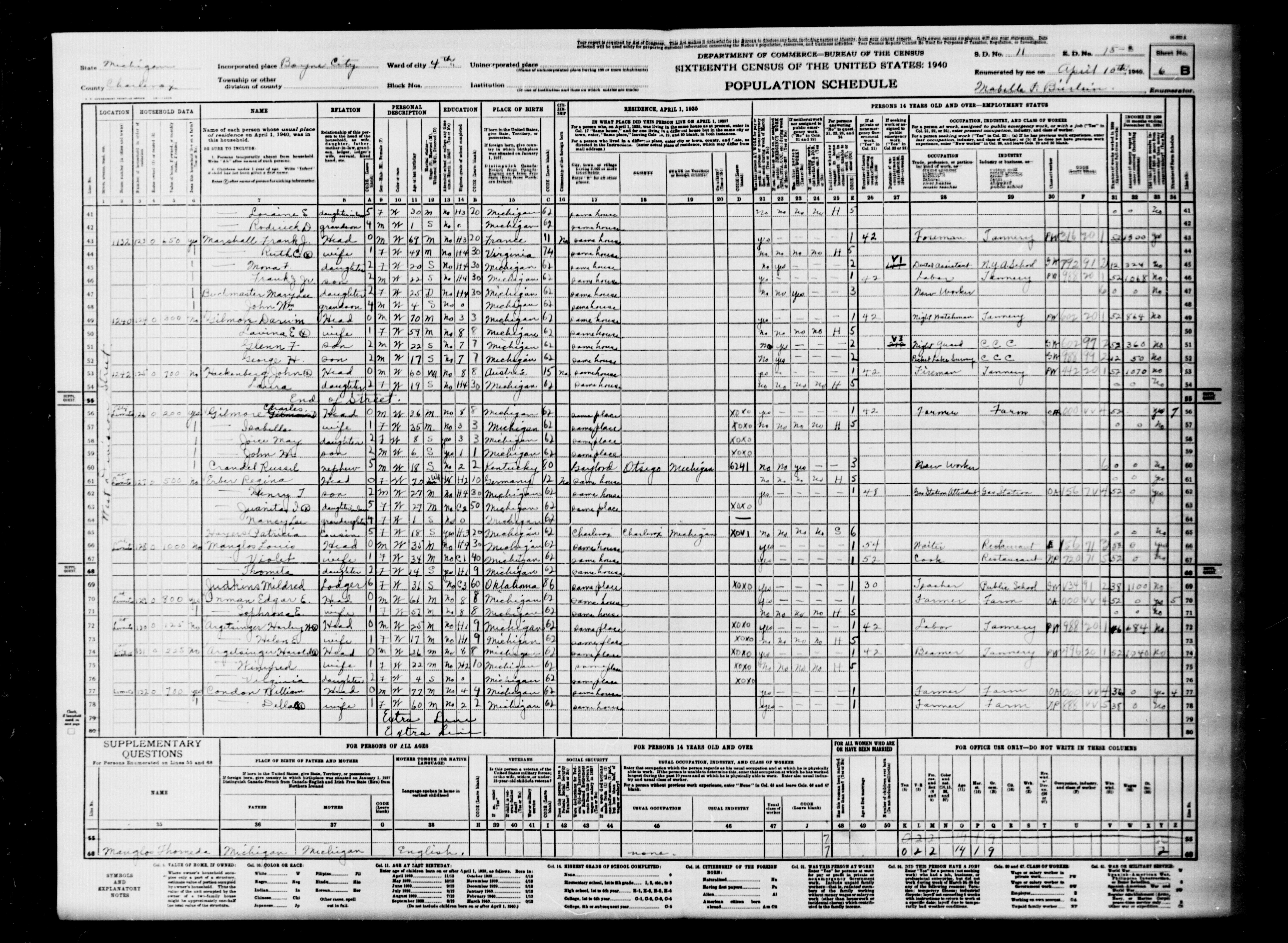 Gilmore, Charles | Charlevoix | Boyne City | Pleasant Ave | 15-3 | 6B