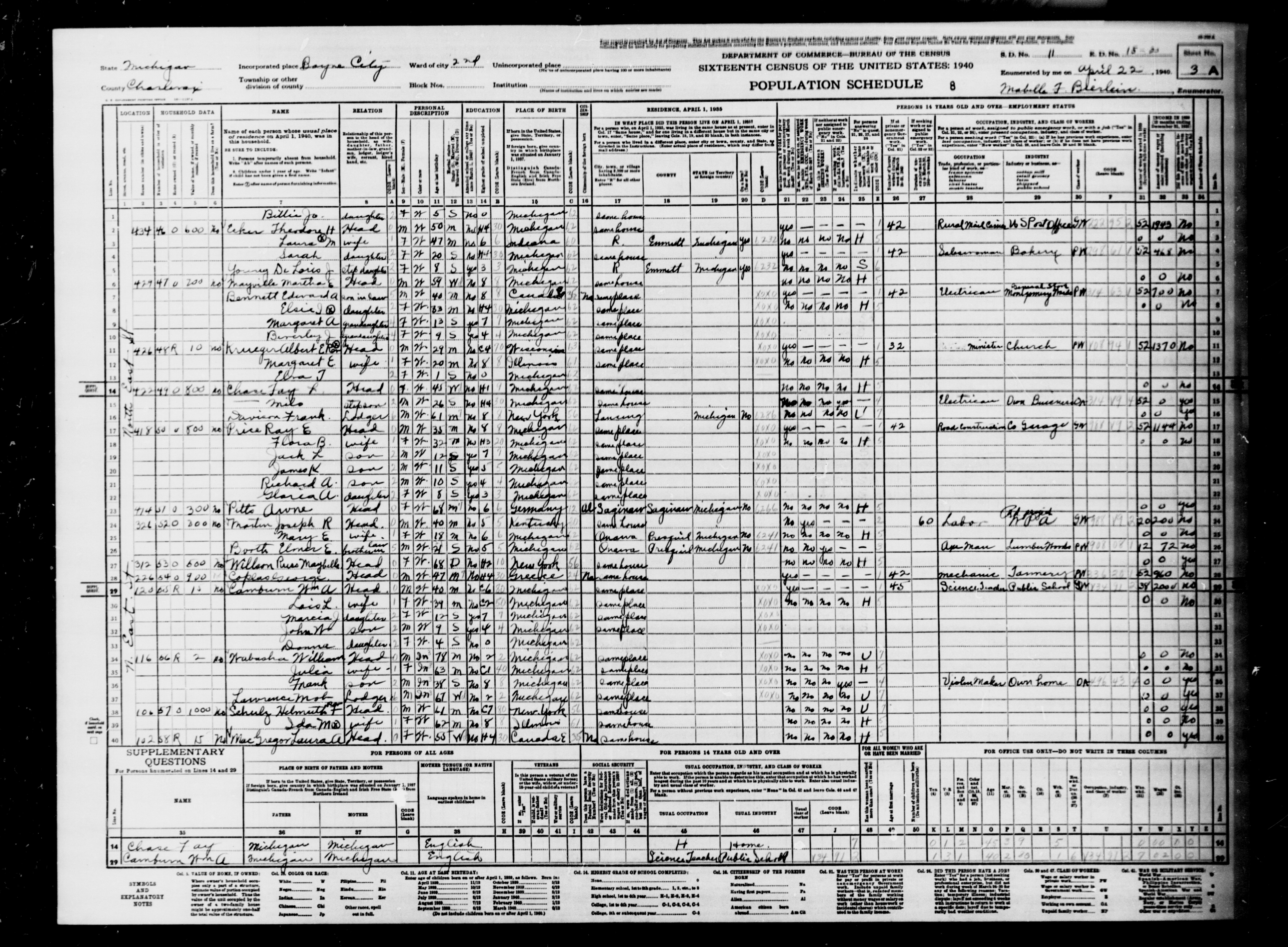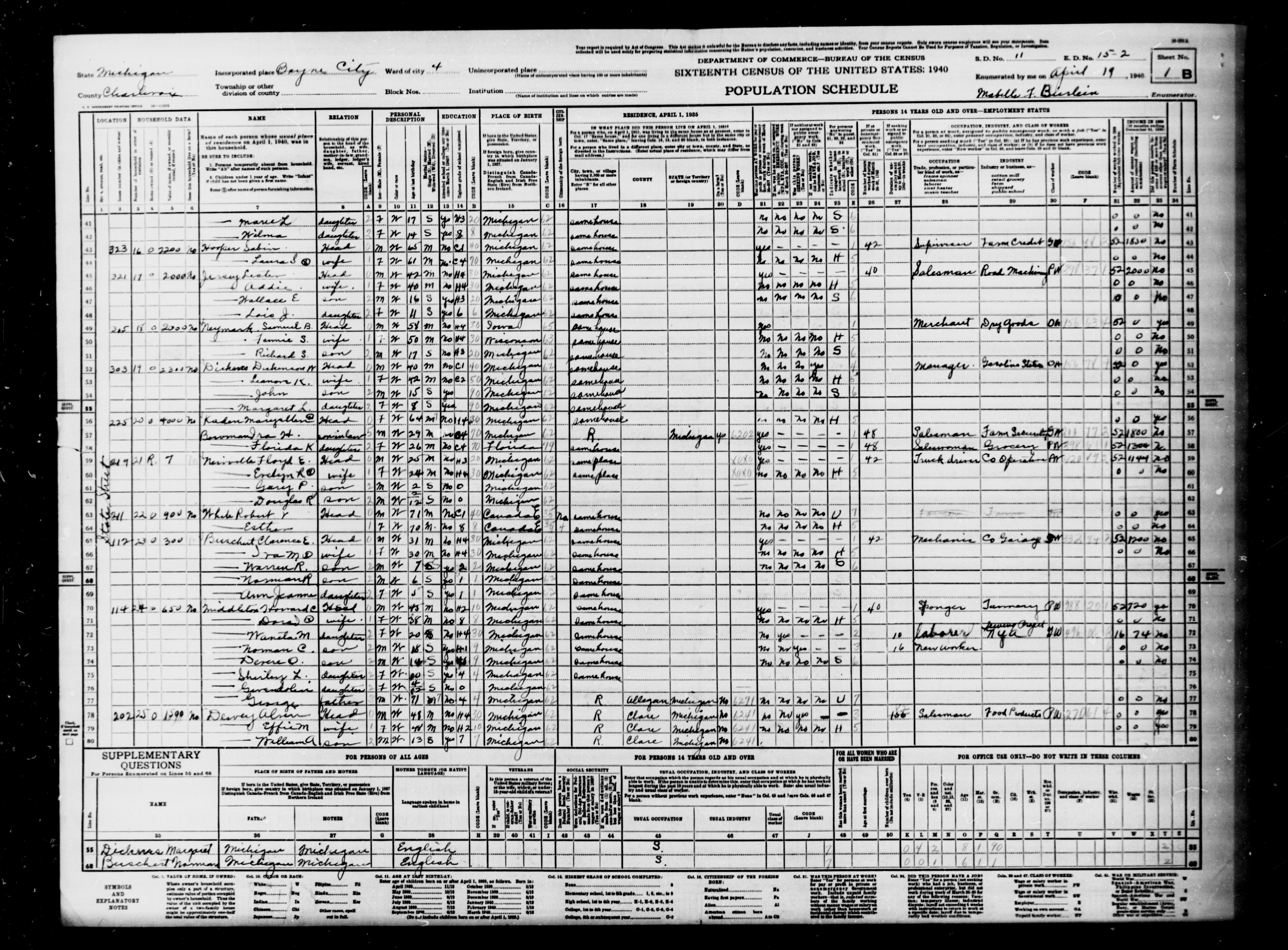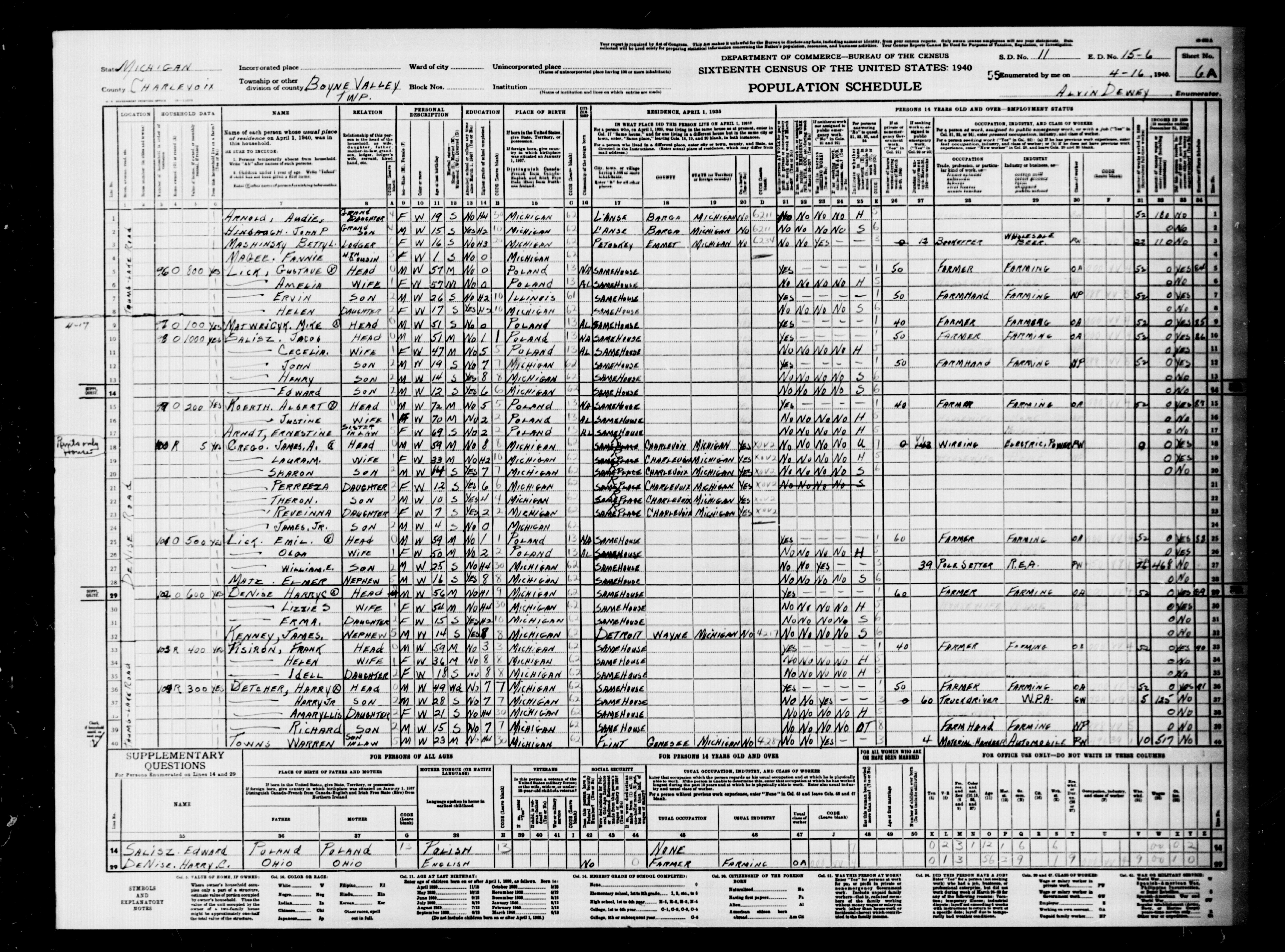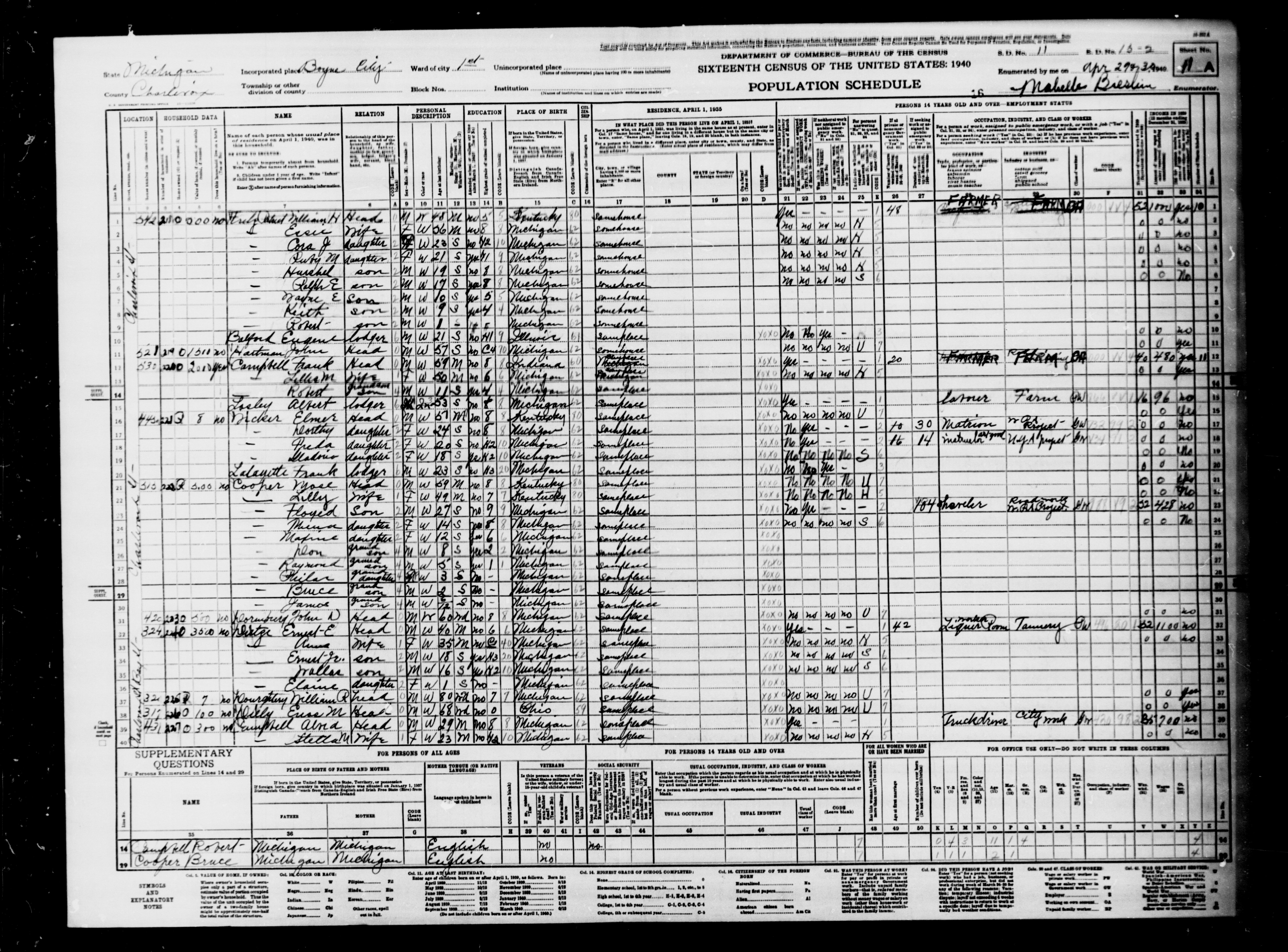 1940 Census, Charlevoix County