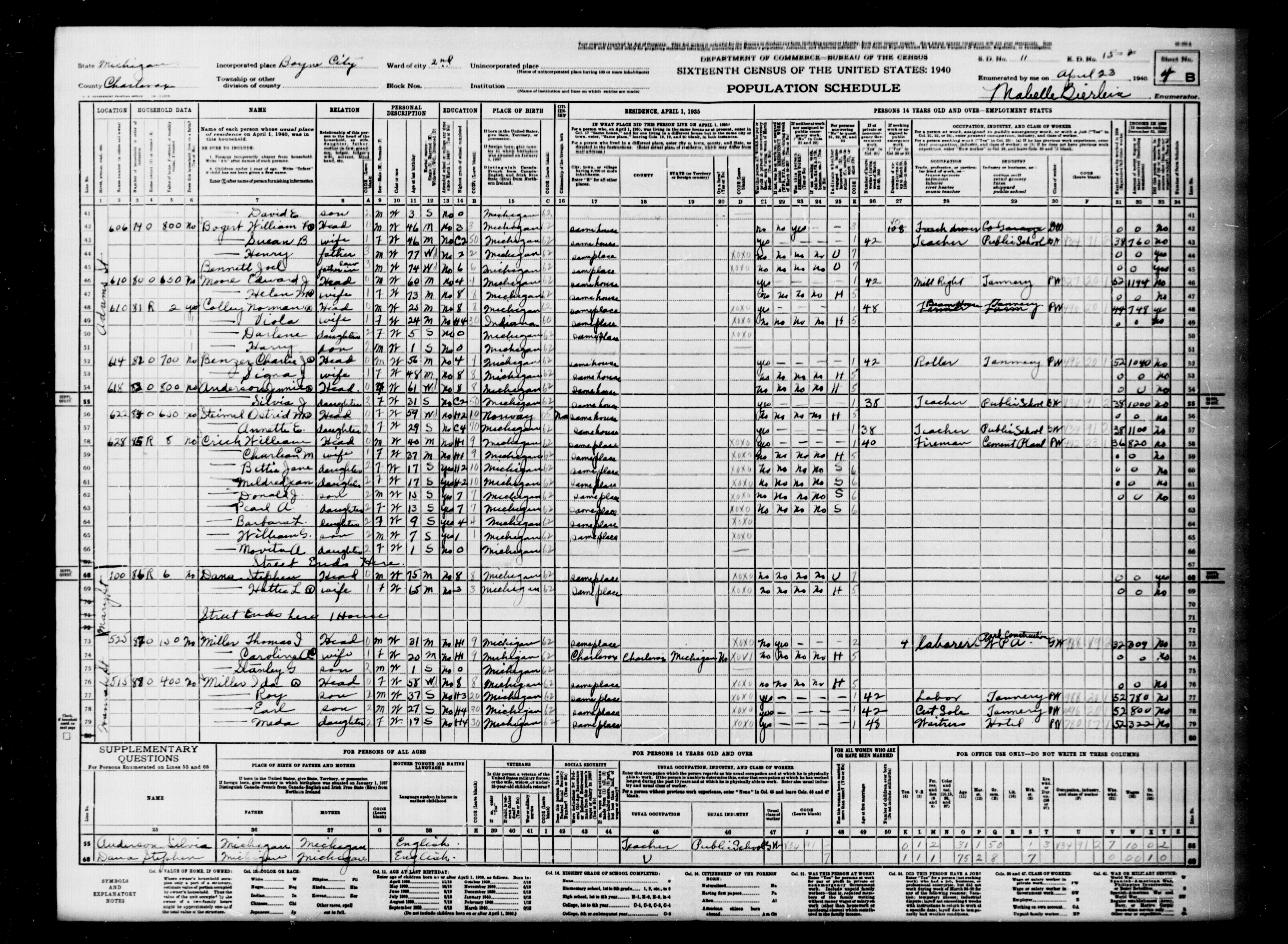 Hosier, Nellie | Charlevoix | Boyne City | Terrace St | 15-3 | 8B