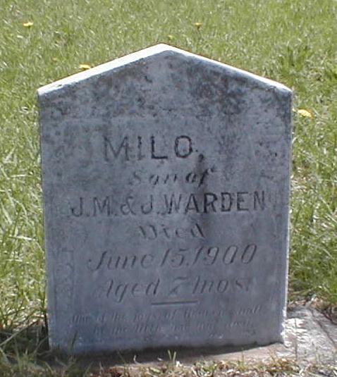 son of J.M. & J. Warden Died June 15. 1900 Age 7 Months Inscription "One of the joys of heaven shall be the little boy that died" | |