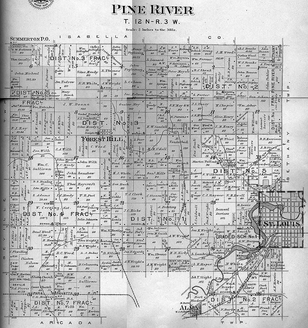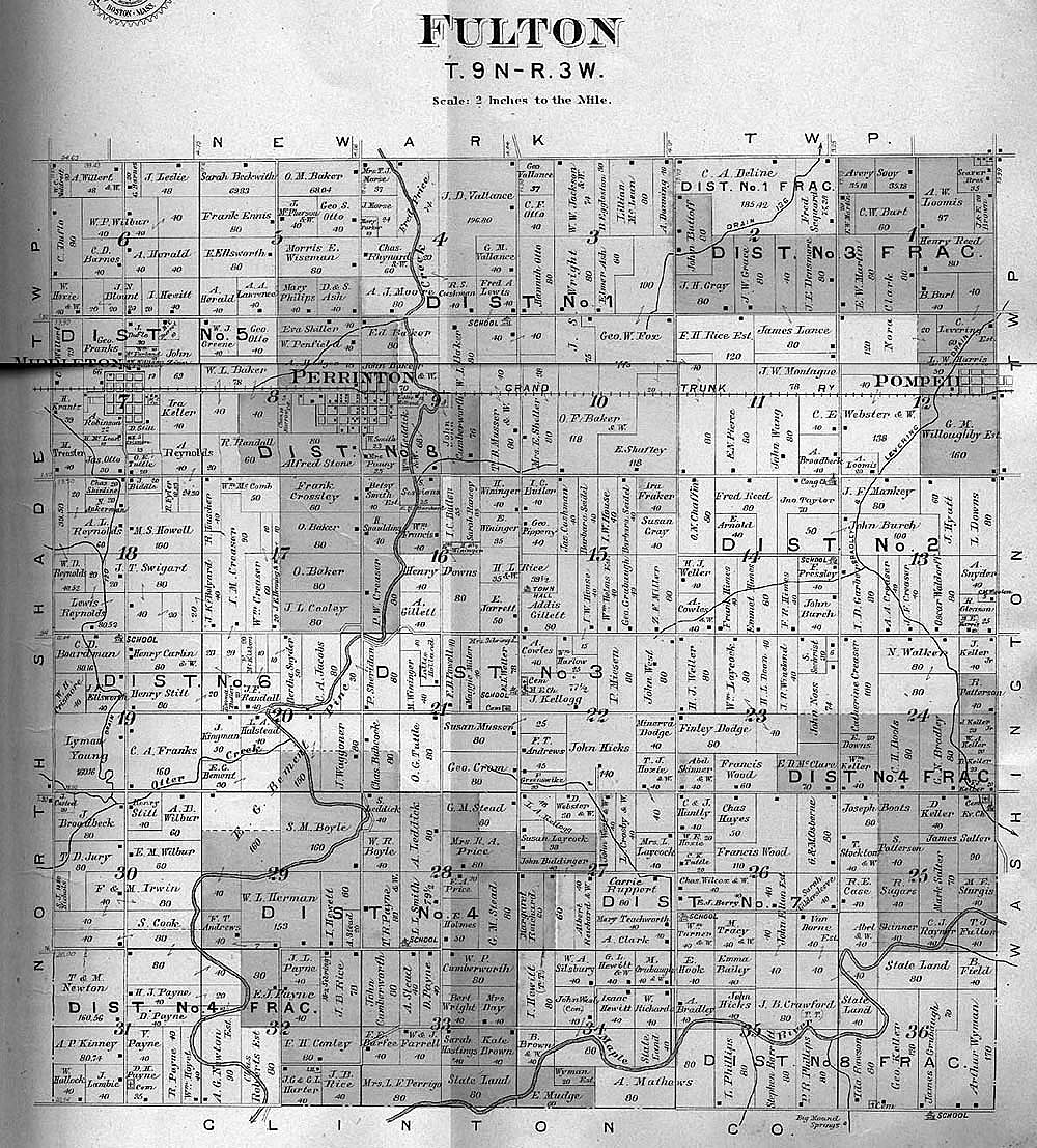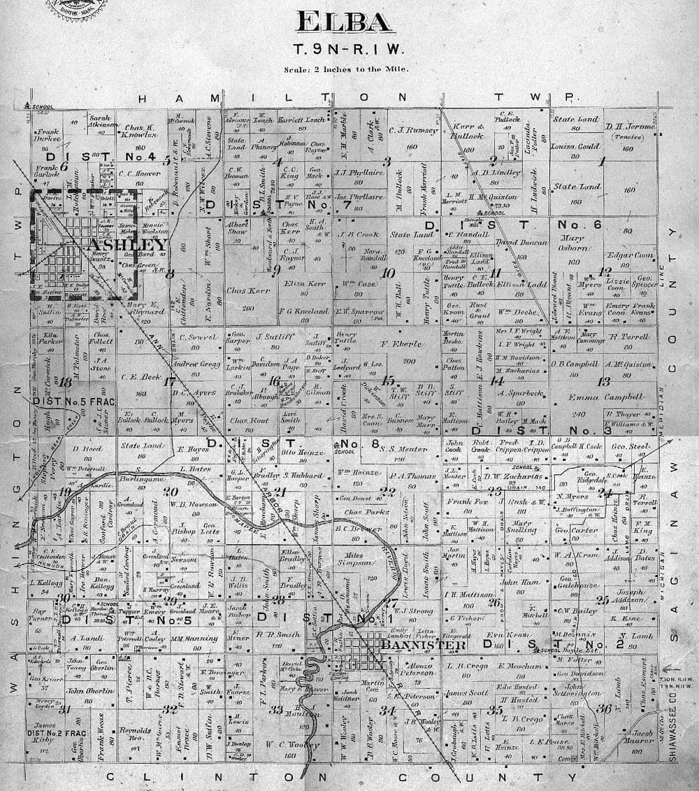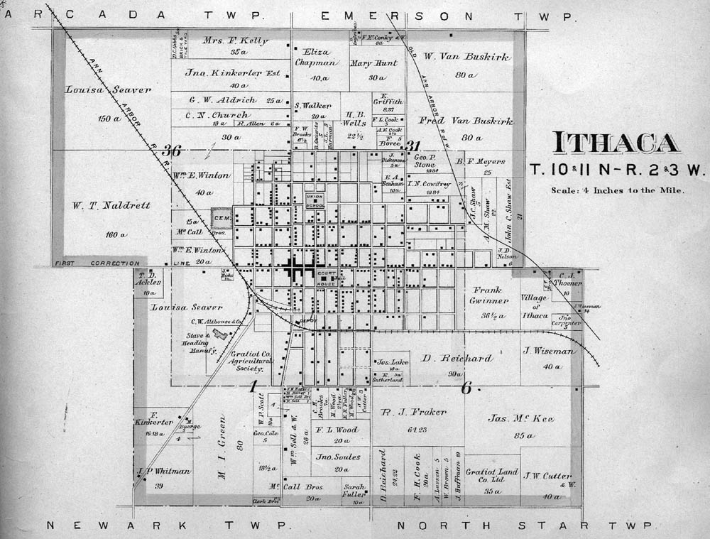 Thanks to a teacher and his class we are able to put up images of the township, village and town maps from the 1901 Atlas of Gratiot Co. This page will evolve as the images come in.