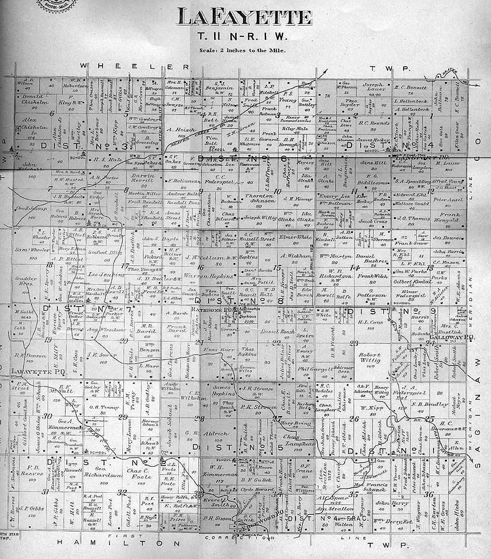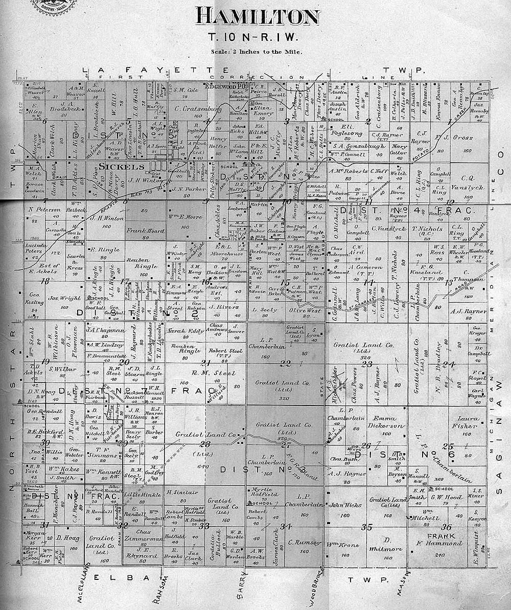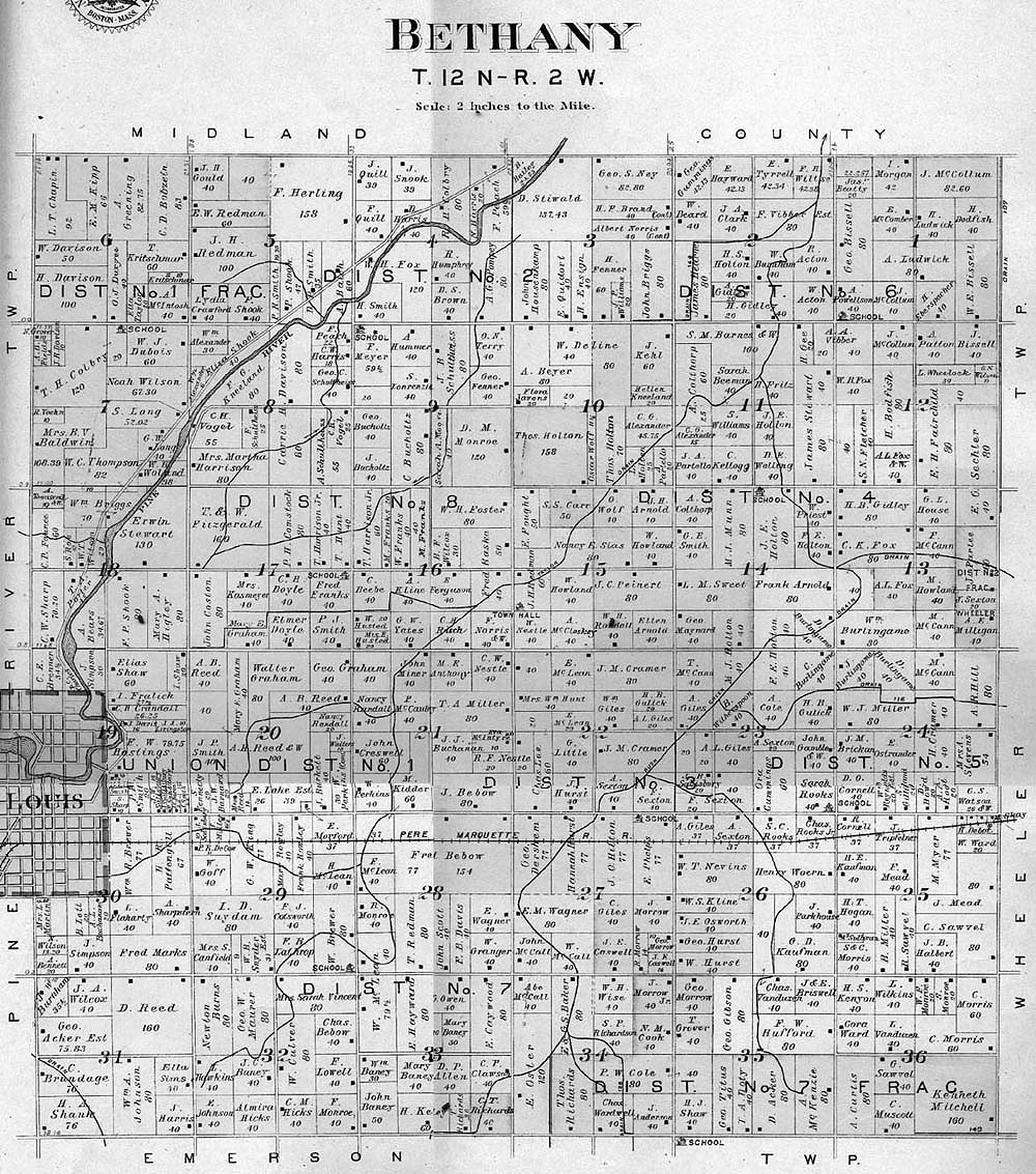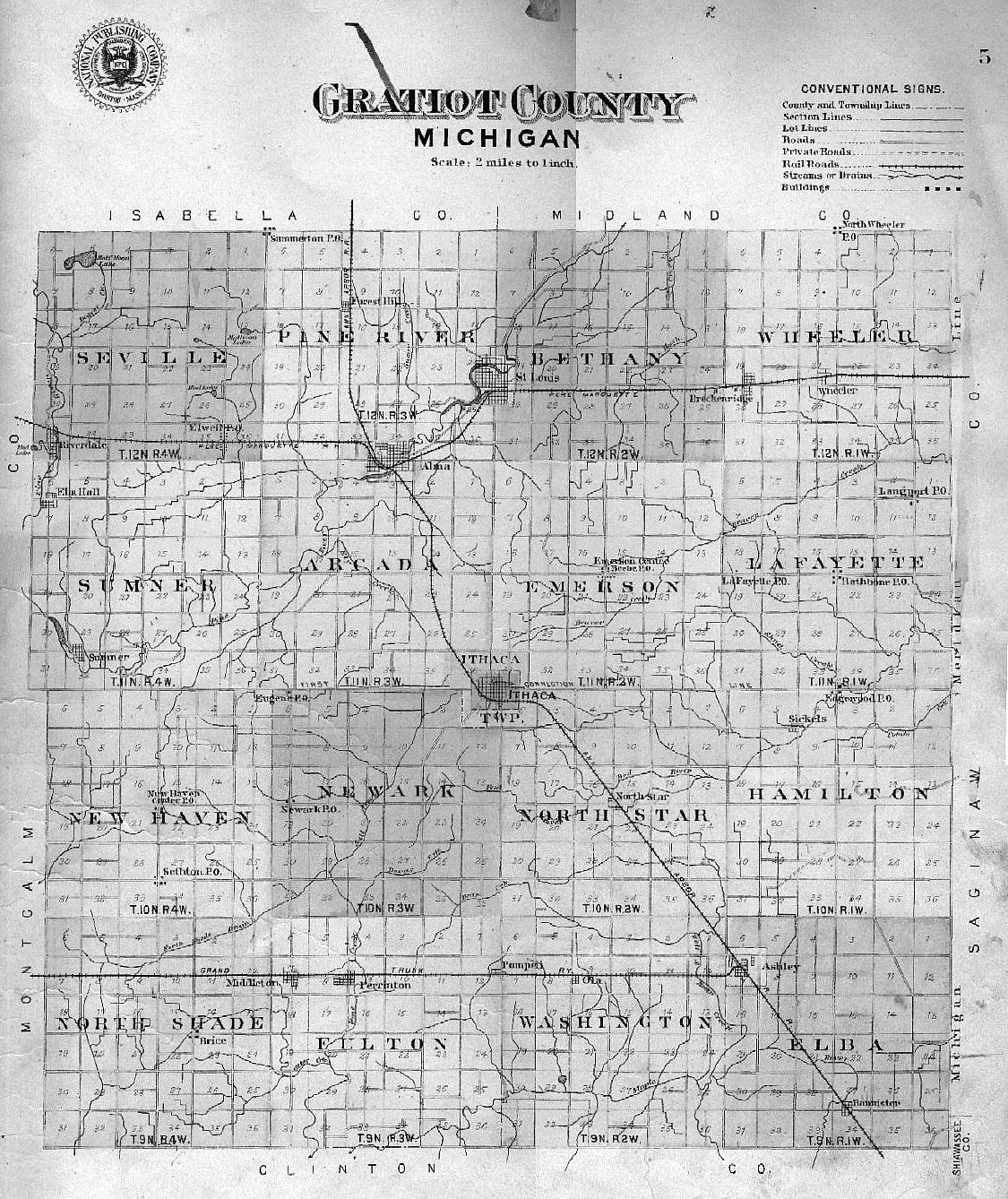 Thanks to a teacher and his class we are able to put up images of the township, village and town maps from the 1901 Atlas of Gratiot Co. This page will evolve as the images come in.