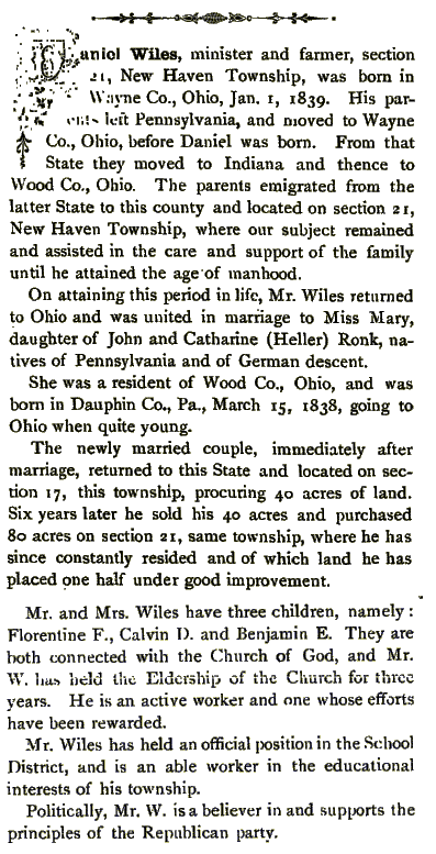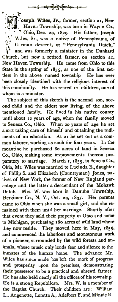 1884 Biographies of some NEW HAVEN PIONEERS |