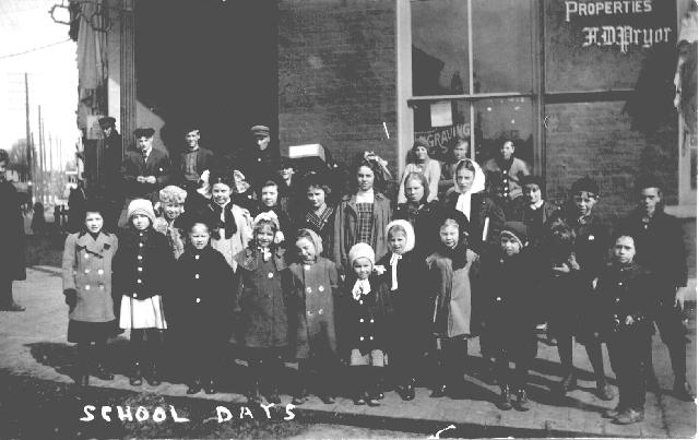 This is a photo from Pam Black that was taken on the main corner in "downtown Montague" as the kids we let out of school to go home for lunch on 12 March 1910. From Pam- The photo was taken by an itinerant photographer, who is unknown. The photo was placed on a post card as was common in that era and sold to the families of the children involved. The only one that I can identify is my mother, Edith Fehrenbach, who is the second from the left in the front row. She lived on North Hill, tho at the time of the photo they was likely living right down town about where the city hall stands today. Edith's father was Simon Fehrenbach and he ran the jewelry store which stood just out of sight around the corner in this photo, in the building that was next to Lipka's drug store. There was a hardware store there in the 1950's. The next shop was Charlie Ohrenberger's bar. I believe that Charlie's son ran the hardware store. Simon left Montague after his wife died in 1918 and went to Muskegon and ultimately to Detroit. My mother stayed with the younger children, got them thru school in Montague.Her older brother, George ran the "last of the mills" on the White River. He did not close it down until some time in the 1960's!!!!! The site is now a park with a plaque telling of the mill. Since my father's family was in Whitehall from the mid 1880's I have scads of photos of people that I have no idea who they are. Plus a good number that I can identify. I know ALL the people in both families back to ca 1810. If you have information on this family, or the members of the picture -Pam Black Pomalablack@cox.net |